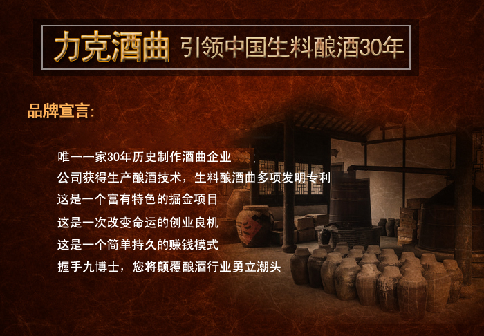 公司始终坚持科研促进企业发展的道路。通过多年的努力,他们成功利用生料酿酒曲系列专利产品酿造酒技术,这消除了蒸煮酿酒原料的需要。只要是含淀粉的生原料,如大米、玉米、高粱等,均可直接使用生料酿酒曲酿造,简化了几千年来传统熟料酿酒的复杂工艺。因此,力克公司现已成为一家专业从事酒曲类开发的企业,拥有完整的产业链和先进的技术,为客户提供优质的产品和服务。通过不断推陈出新和持续创新,力克公司不断扩大其业务范围和市场份额。他们的使命是将专业知识和经验应用于酿酒行业,为全球消费者提供高质量、健康、天然的酿酒类产品。